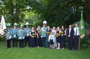 Unser neuer König Andreas Velser mit seinem Hofstaat und unserem Präses Hendrik Hülz.